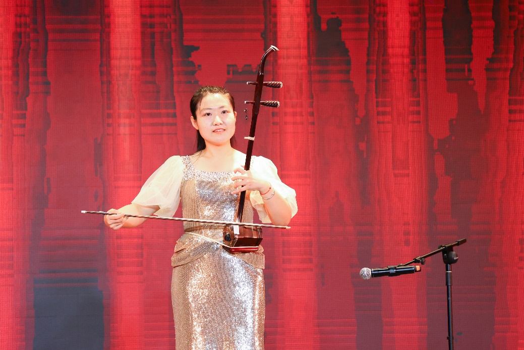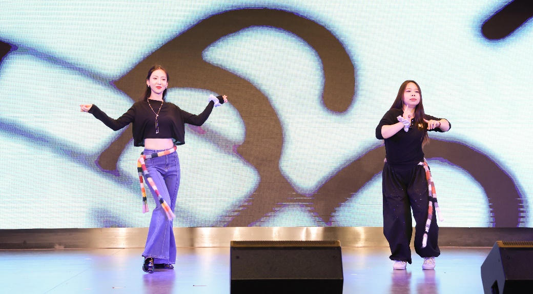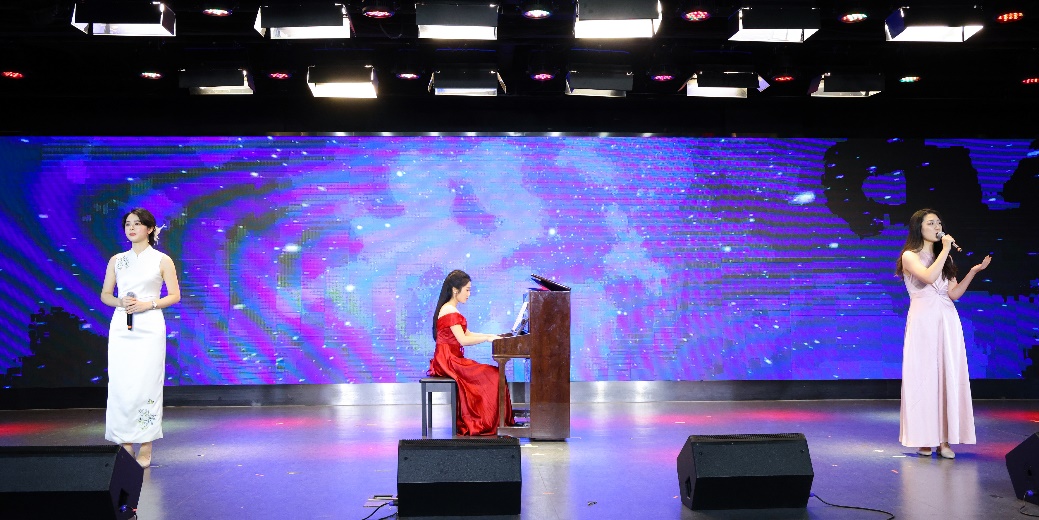 演出刚柔并济、动静相宜,在传统与现代的碰撞中,充分彰显兼容并包的艺术张力。二重唱《世界赠与我的》空灵婉转,诗朗诵《百年交响——军号》铿锵有力;爵士舞《每首歌只会一点点》跃动青春活力,民族器乐表演《战马奔腾》《象王行》奏响时代强音。多轮抽奖互动环节穿插其间,悬念迭起,将现场气氛推向一个又一个高潮。