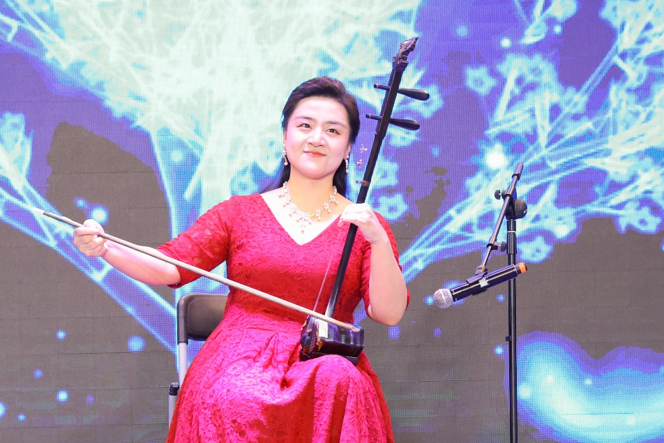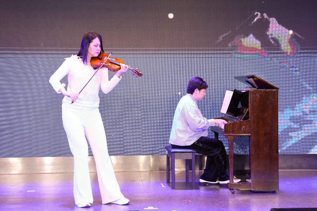 鸣锣开场,狮舞新春。学生工作部的《舞狮》踩着欢腾的鼓点,点燃满堂喜庆,也拉开了整场演出的序幕。机关党委书记刘旭东、副书记田越携机关党群团代表的配乐诗朗诵《新年,你好》道出了机关教职工过去一年的辛苦和快乐,也给大家带来了新年的祝福。随后的节目异彩纷呈,涵盖合唱、器乐、舞蹈、朗诵、魔术等多种艺术形式:舞步灵动,群舞《花儿为什么这样红》热情如火,飞扬的裙摆卷起天山的风,吹开新年新气象;琴音悠长,彩蝶蹁跹,钢琴与小提琴二重奏《梁祝》如泣如诉,道不尽超越生死的永恒浪漫;虚实之间,时空被悄然折叠,魔术表演《新年有魔力》带领大家拥有奇妙超能力,共度魔幻一刻……享丝竹之悦耳,别案牍之劳形,机关教职工们各显神通,他们以音乐传情、以诗文述志,共同传递对新年的美好憧憬。