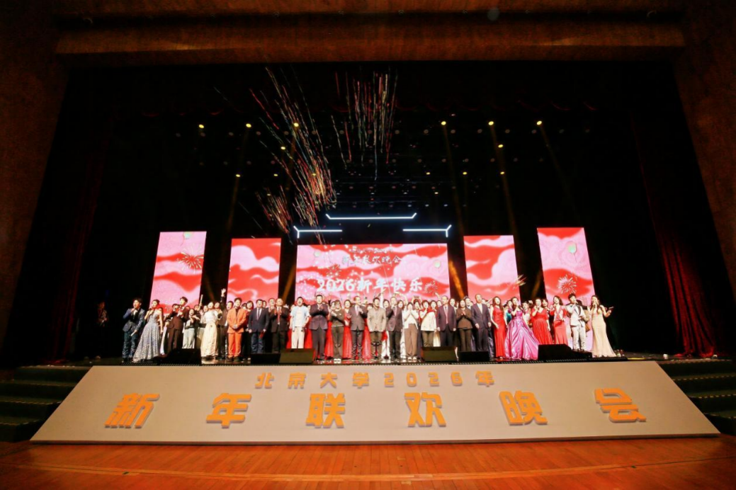2025年12月31日晚,北京大学2026年新年联欢晚会在百周年纪念讲堂举行。校党委书记何光彩、校长龚旗煌等全体校领导来到现场,与师生员工欢聚一堂,共迎新年钟声。